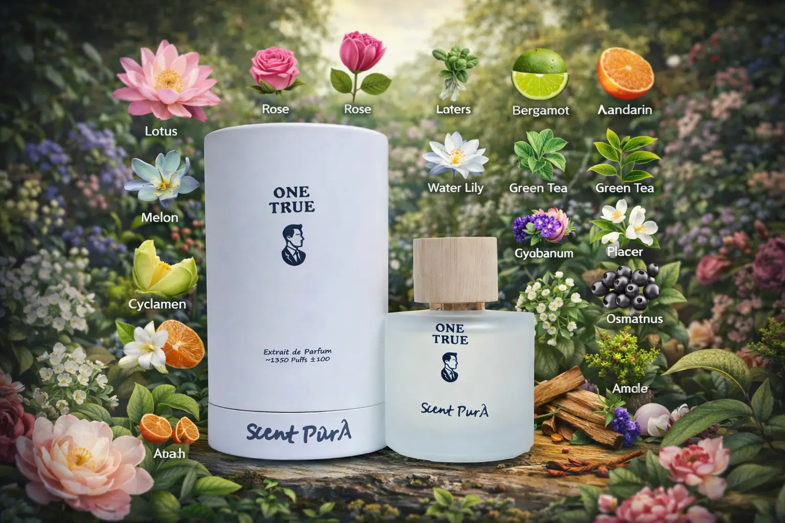 One True is a fresh aquatic fragrance with citrus, florals, and soft woods. Bergamot and green tea feel clean. Floral waters add elegance. Musk and sandalwood bring warmth. Designed for everyday wear, it offers calm confidence, smooth balance, and a light, refreshing presence that lasts gently through the entire day.